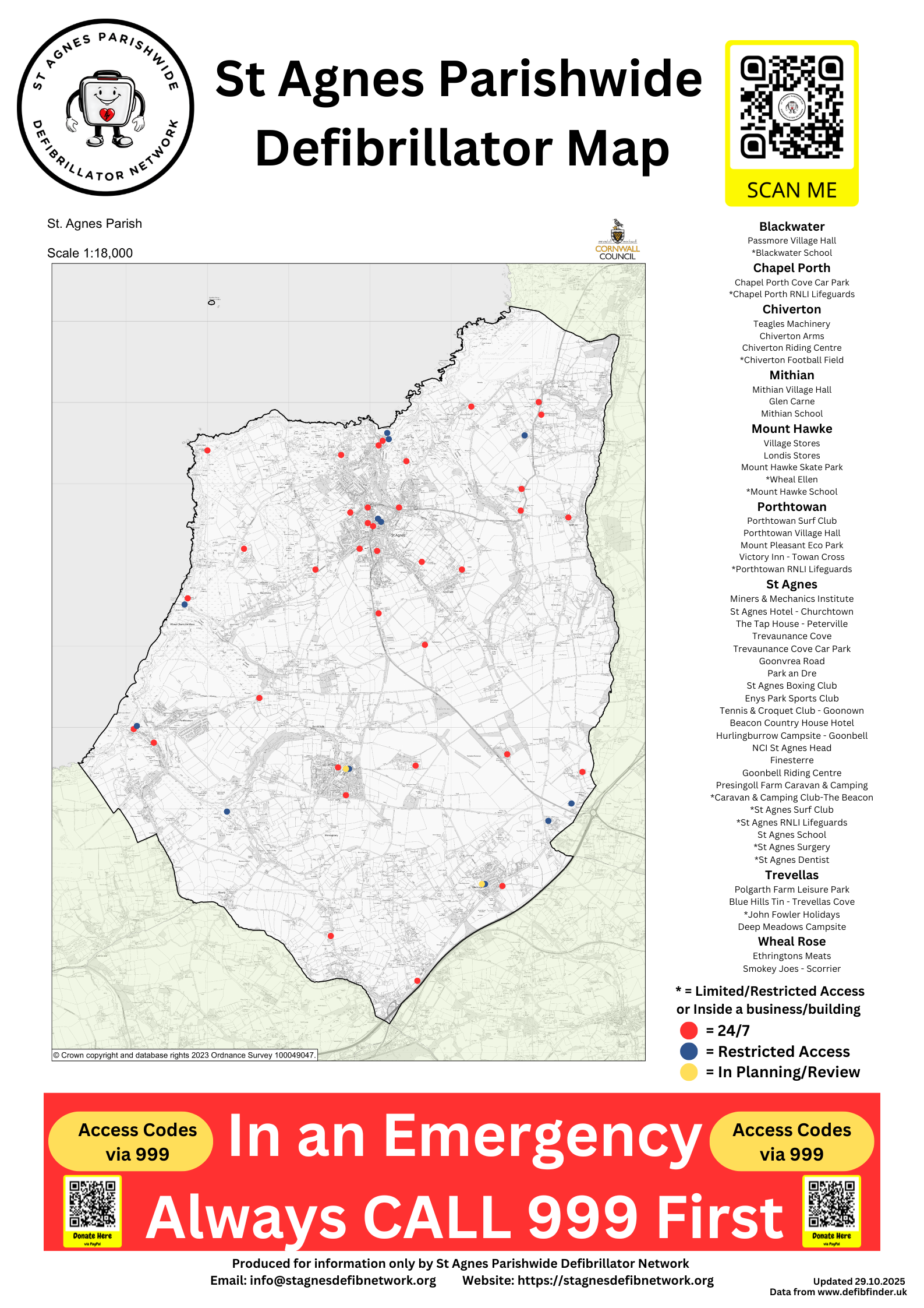 Our volunteer lead organisation was formed following the huge success of the St Agnes Parish community collaboration relating to 'Community/Public Access Defibrillators' from a starting point in March 2023 of only 10 registered defibrillators we have a network of over 50, spread across the St Agnes Parish area.